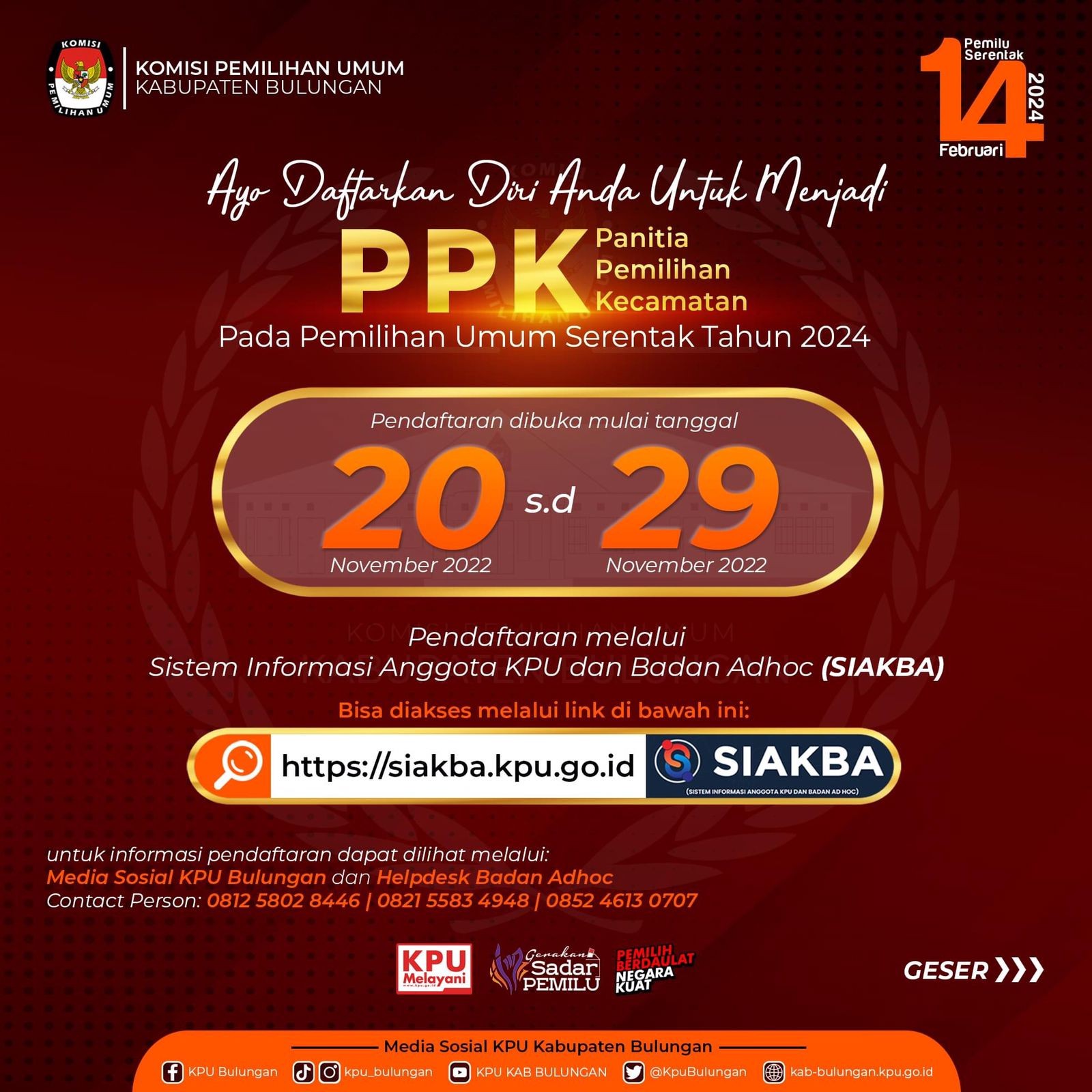#TemanPemilih Telah dibuka pendaftaran Anggota Panitia Pemilihan Kecamatan (PPK) pada Pemilihan Umum Serentak Tahun 2024.