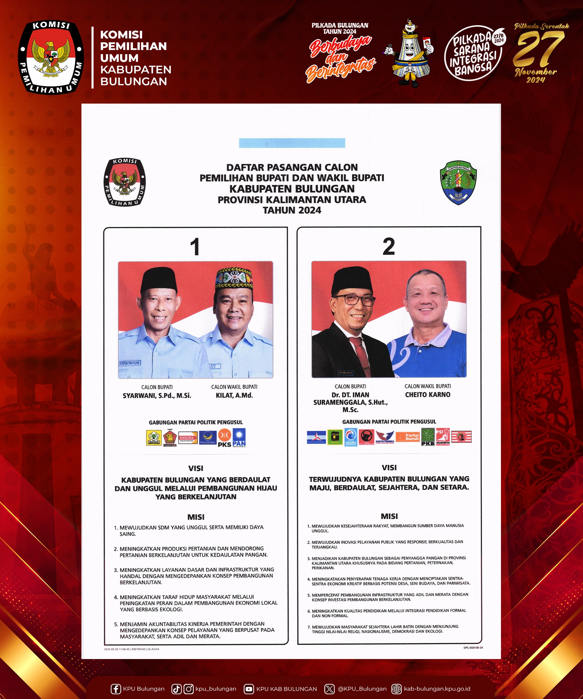 Daftar Pasangan Calon Bupati dan Wakil Bupati Bulungan Tahun 2024