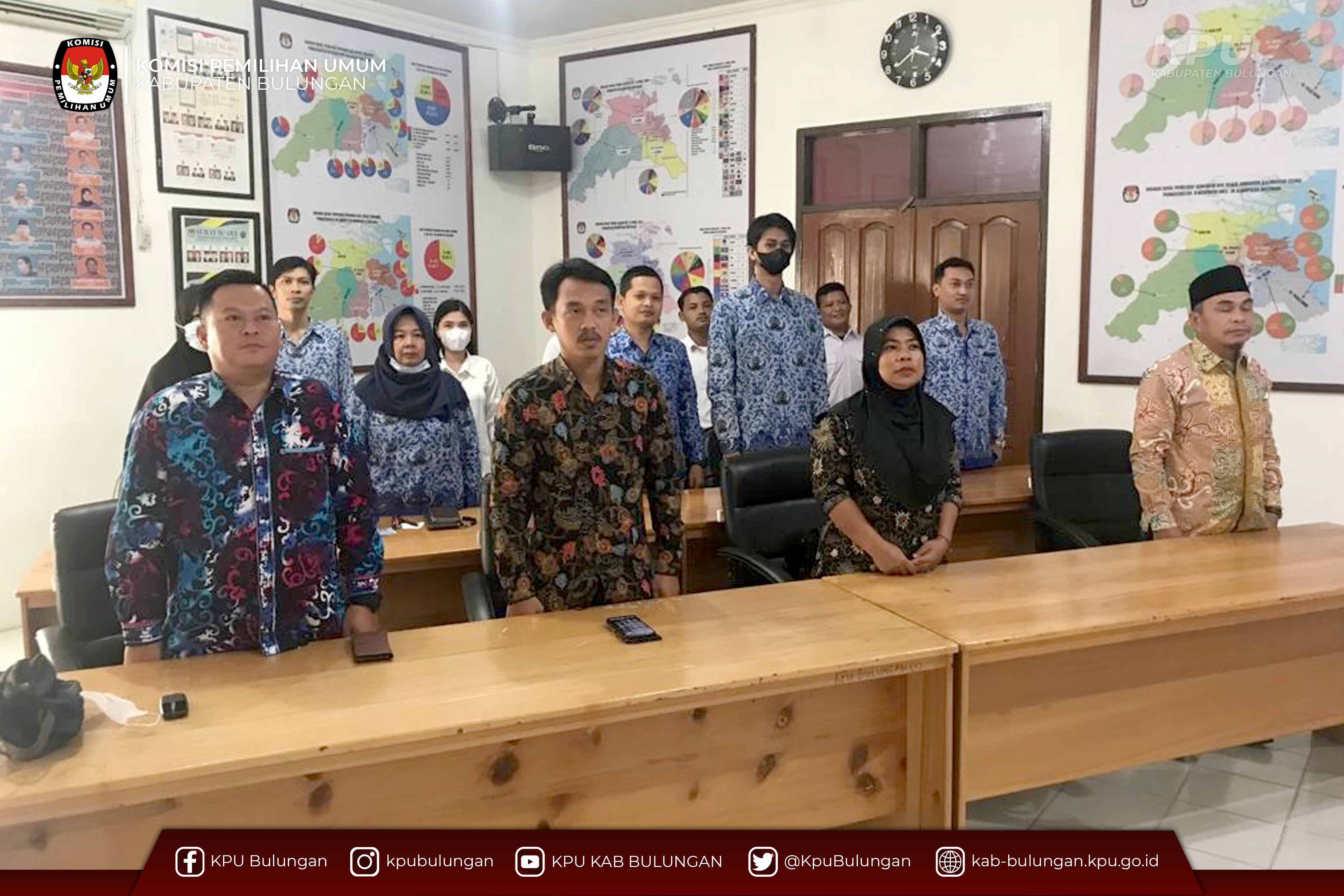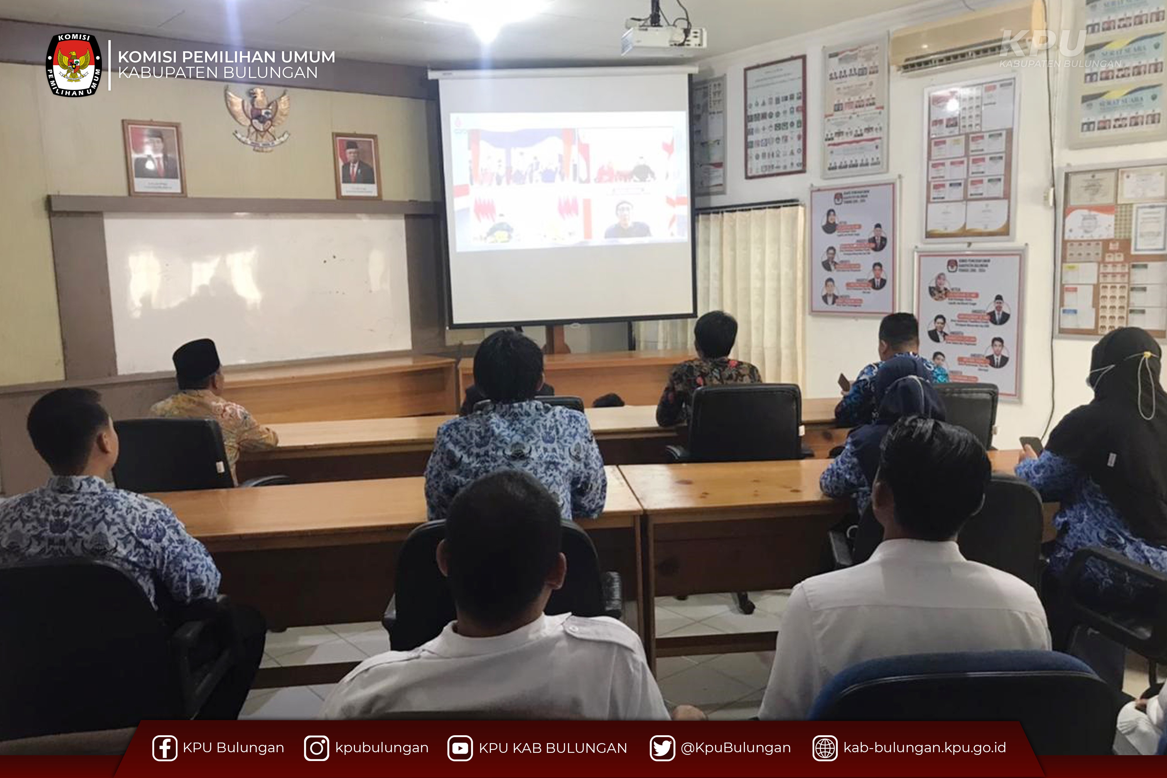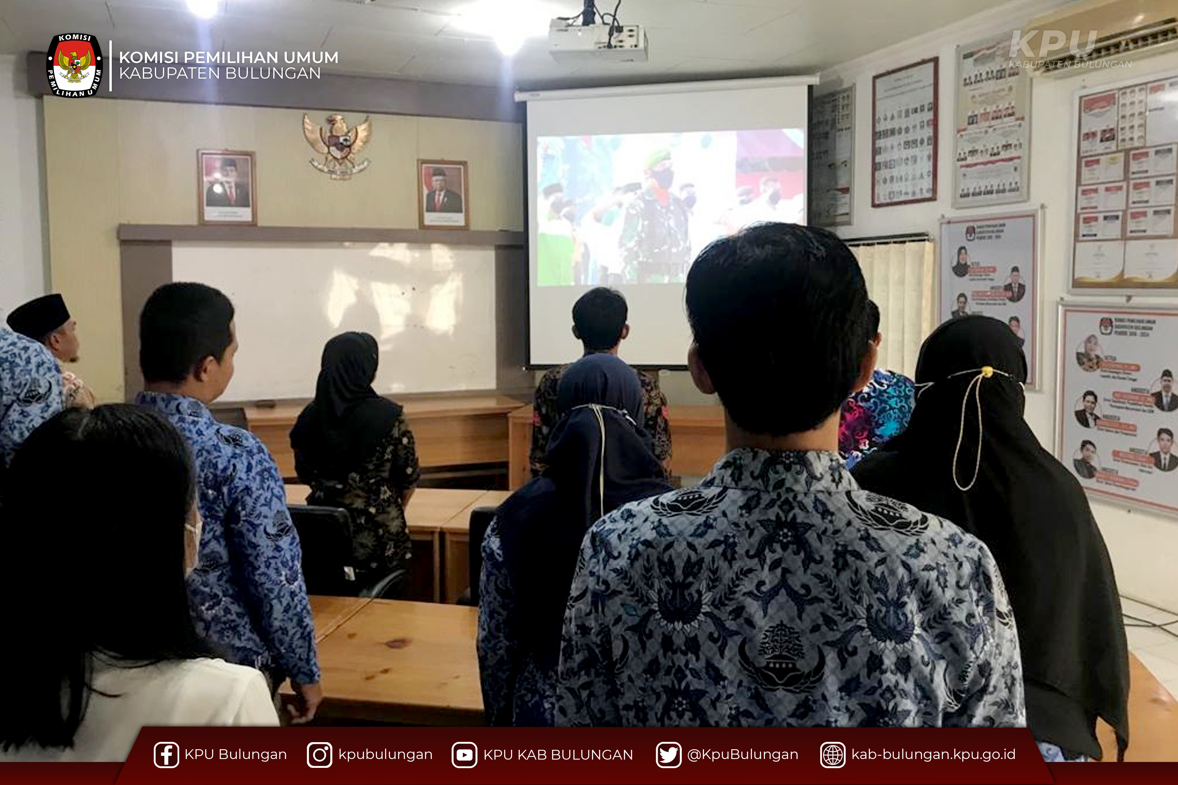 Ketua, Anggota, Sekretaris, Kasubbag, dan Seluruh Staf KPU Kab. Bulungan mengikuti Upacara Peringatan Hari Lahir Pancasila secara daring yang bertempat di ruang rapat KPU Kab. Bulungan.