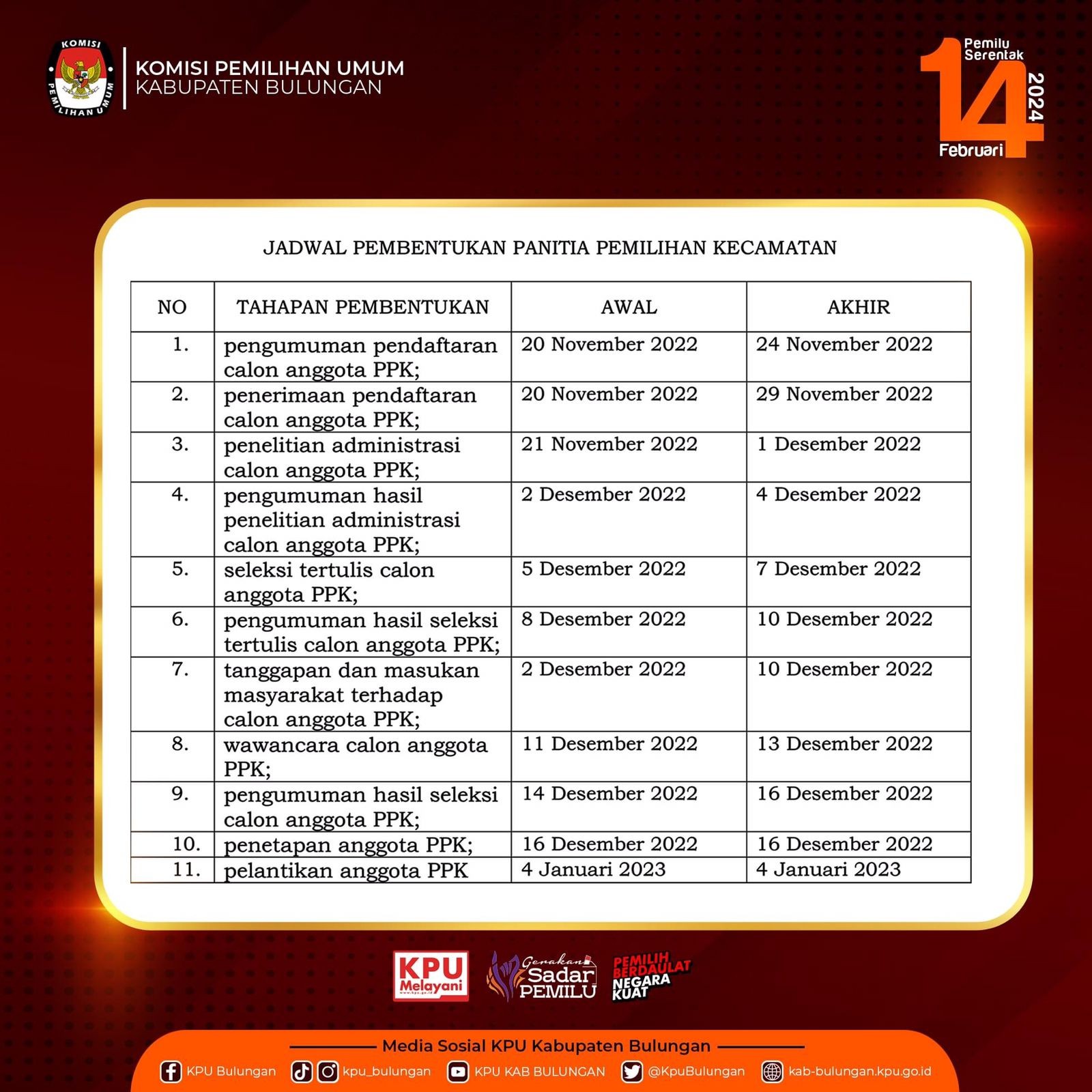 #TemanPemilih Telah dibuka pendaftaran Anggota Panitia Pemilihan Kecamatan (PPK) pada Pemilihan Umum Serentak Tahun 2024.